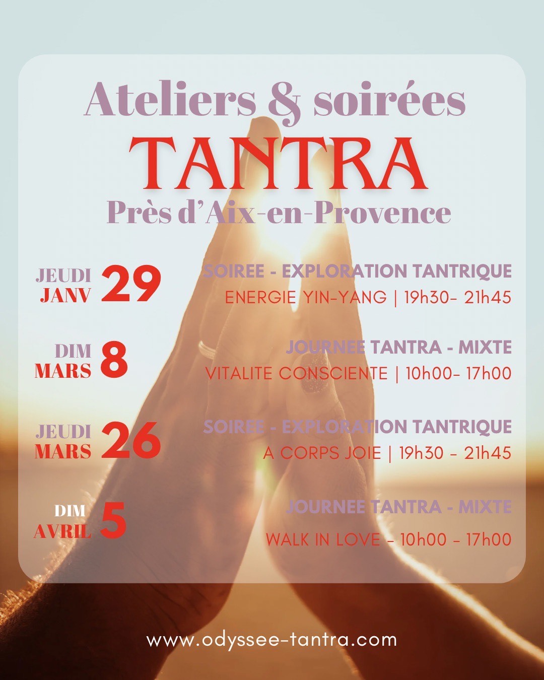 En 2026 nous continuons sur notre belle lancée de soirées et journées Tantra, un jeudi par mois et un dimanche par trimestre.